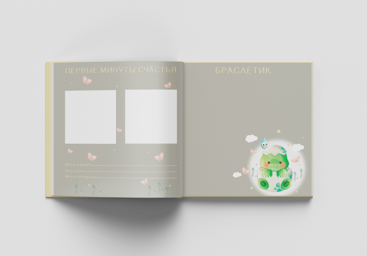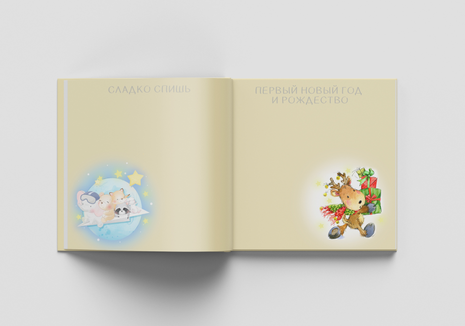 Создать милый, детский дизайн фотоальбом для ребенка до 1 года.